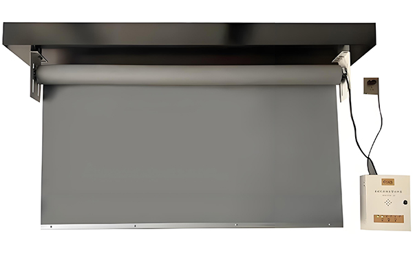 连接电源线和控制线,将西和挡烟垂壁安装在支架上,并用螺丝固定。